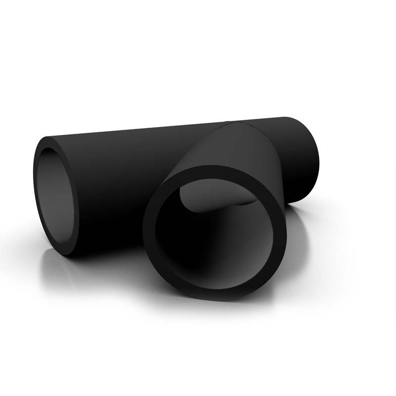 TEE 45° in polietilene alta densità, formata tramite assemblaggio e saldatura di più parti. Si utilizza su impianti per ladistribuzione di acqua o per applicazioni industriali. Compatibile con acqua potabile.